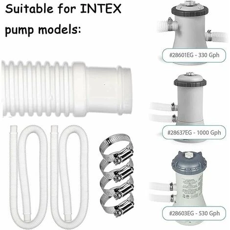 - Tuyau de remplacement de piscine : utilisez ce kit pratique pour remplacer immédiatement le tuyau de piscine hors sol. Incluant 2 pièces de rechange de tuyau de piscine [149,9 x 3,2 cm (L x P)] et un collier de serrage en acier inoxydable de 10,2 cm pour une double isolation ou une pompe simple.