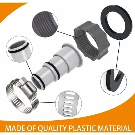 【adaptateur piscine intex de haute qualité】 adaptateur piscine intex 32 38 est fabriqué en matière plastique résistante à la corrosion, robuste et durable. L’anneau en caoutchouc s’adapte parfaitement au tuyau de 1,25″ pour créer un espace étanche pour