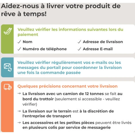 En raison du poids élevé d’un hot tub rempli, le sol doit être nivelé avec des graviers ou des dalles de pierre. Veillez également à enlever toute végétation sous le hot tub afin d’éviter qu’elle ne s’incruste.