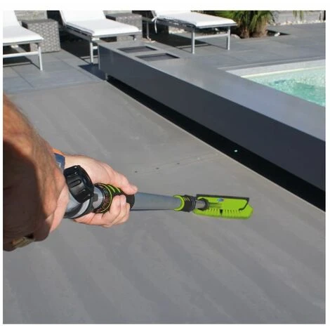 Le balai hydrojet Xpro est équipé d’un manche télescopique en aluminium  et d’une brosse doublée d’une raclette intégrée pour supprimer les excès d’eau et enlever les tâches récurrentes. Ce balai se connecte à un tuyau d’arrosage en toute simplicité avec un raccord classique et comprend un réservoir de produit nettoyant.