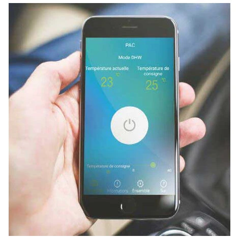 Pilotable depuis votre smartphone Installation simple Connecté à votre Box internet Garantie 2 ansUne appli qui vous change la vieAvec l’appli téléchargeable depuis Apple Store ou Google Play, vous pilotez votre PAC d’un seul doigt. Température de consigne, mode de chauffage, toutes les fonctions du panneau de contrôle son présentes sur cette appli simple et intuitive.Depuis votre smartphone, du bout du mondeUne simple connexion internet depuis votre smartphone ou votre tablette suffit pour prendre les commandes de votre pompe à chaleur. Vous pouvez anticiper votre retour à la maison et profiter d’un bain à température dès votre arrivée.Installation et configuration simpleBranché sur le boîtier de commande de votre pompe à chaleur, le boîtier Wifi se connecte à votre réseau Wifi Internet en quelques minutes. Il vous suffit maintenant d’une connexion internet sur votre smartphone pour piloter votre pompe à chaleur, même depuis l’autre bout du monde. Votre boîtier est étanche et aimanté pour le disposer simplement sur votre pompe à chaleur.Retour d’information en temps réelPlus qu’un simple boîtier de commande déporté, vous retrouvez également dans l’application la température du bassin, le mode de chauffage sélectionné, le débit de votre installation. L’appli vous alerte également en cas de problème sur votre installation
