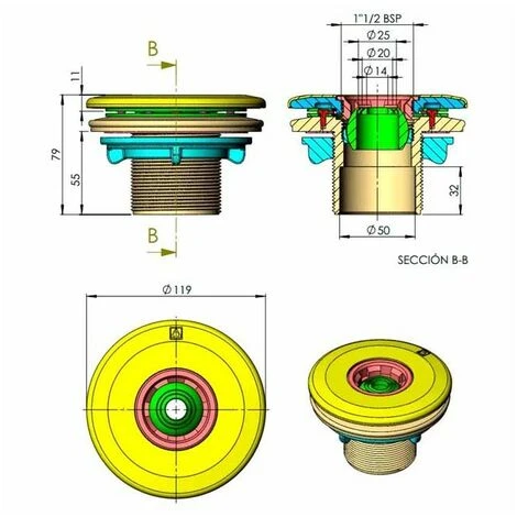 Buse de refoulement multiflux pour filetage pour piscine liner.
