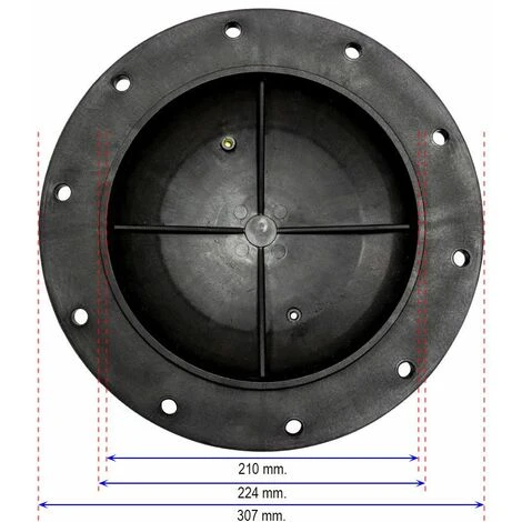 Fixation par 10 écrous à visser sur vis incrustées dans la bouche du flltre.