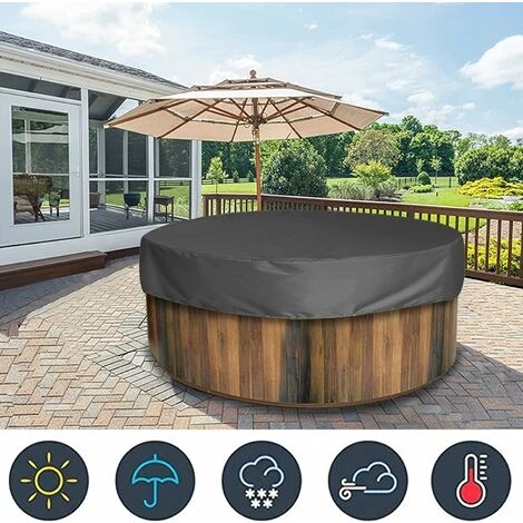 【FACILE À NETTOYER】Nos couvertures d’extérieur ont une conception unique et sont donc extrêmement faciles à nettoyer. Vous pouvez l’arroser avec de l’eau et le laisser sécher au soleil. Séchez la couverture ronde du spa au soleil pour la prochaine utilisation. Il est livré avec des poignées pour un montage et un retrait faciles.