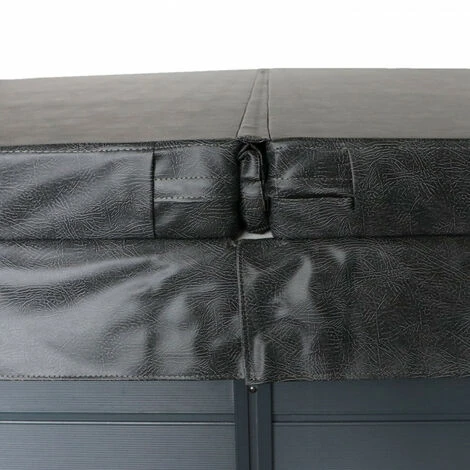 COUVERTURE POUR SPA – 220 x 220 x R20 cmLa couverture de spa est un élément indispensable pour votre spa ! Elle vous offre la sécurité et l’isolation nécessaire afin de maintenir l’eau de votre bain à remous à la température idéale.Une couverture dense et un vinyle de qualité Cette couverture compatible avec des spas de dimensions 220x220xR20cm a la particularité d’avoir une mousse très dense, entre isolation Premium et Energie tout en disposant d’un vinyle gris graphite de haute qualité. Couverture hybride permet de réaliser des économies d’énergie et ainsi réduire vos dépenses !Votre spa ne fait pas tout à fait cette dimension ?Ne vous en faites pas ! Nous appliquons une fourchette d’adaptabilité de -3cm et +5cm.POINTS TECHNIQUESRetrouvez ci-dessous nos vidéos pour vous guider afin de savoir mesurer au mieux votre spa :OurletsSanglesDimensions POINTS FORTSVinyle haute qualité et points de sutures serrés Le Vinyle est résistant aux intempéries. Il dispose de coutures très solides qui accroîent la longévité de la couverture. Acier renforcé L’ensemble des plaques d’isolation sont renforcées par des barres en acier. Housse amovible La couverture est équipée d’une housse amovible robuste avec zip. Elle permet d’accéder aux plaques polystyrènes facilement.Caractéristiques détailléesSpécificitésDimensions (cm)220 x 220 x R20 cmMatièreVinyle haute qualité – mousse très denseFormeCarré avec les bords arrondisCouleurGris graphiteIsolationHybride (entre Premium et Energie)Epaisseur12 cm au centre – 10cm sur les côtésLongueur ourlets (cm)18 cmLongueur sangles (cm)40 cm