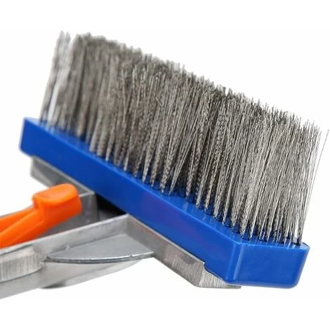 Fonctionne sans effort pour combattre et nettoyer les taches tenaces, les marches, les échelles, le périmètre de la piscine et les sentiers.Cheveux élastiques à haute densité et en acier dur, efficacité de nettoyage élevée, facile à utiliser.L’angle de 45 degrés de la poignée facilite le glissement et le nettoyage sous l’eau.Idéal pour nettoyer la saleté, les algues et les débris du sol et des parois de la piscine.