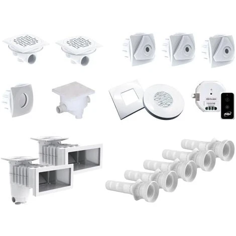 Fabriquées en France, toutes les pièces à sceller de ce kit sont de couleurs blanches et conviennent pour des piscines à revêtement béton et liner.