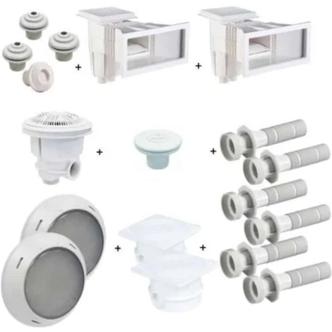 Le Kit pièces à sceller Astral Pool comprend : 2 skimmers, 1 bonde de fond, 2 bouches de refoulement, 1 prise balai, 1 projecteurs, 4 traversées de paroi, 1 boîte de connexion et 1 passe-câbles. Tous ces éléments sont inclus pour vous offrir une filtration optimale et un entretien facile de votre piscine.