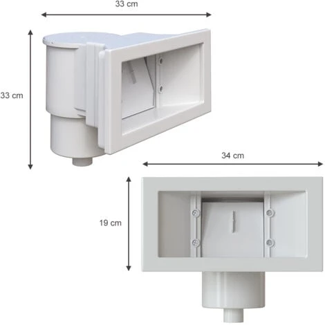 Outre un volet de skimmer et un panier de skimmer, le kit skimmer, fabriqué en plastique ABS robuste, comprend une plaque d’aspiration sur laquelle peuvent être facilement raccordés des tuyaux divers et variés, comme ceux d’un nettoyeur de piscine.