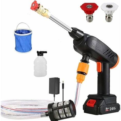 Nettoyeur haute pression alimenté par batterie 24V récemment mis à niveau, nettoyeur électrique portable sans fil 15000Ah / 435 PSI Nettoyeur haute pression électrique pour voiture, bateaux de camping-cars ou maison