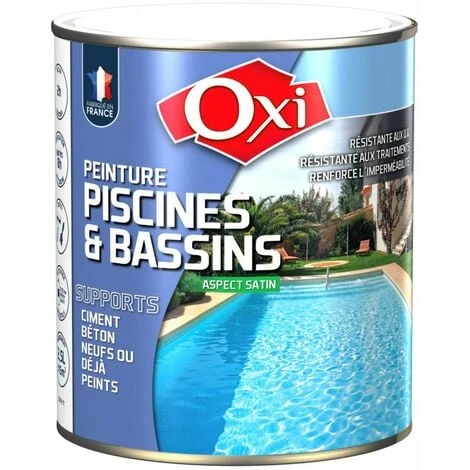 Informations produitConseilsPréparation – La reconnaissance et la préparation des supports sont primordiales pour la réussite de la mise en peinture de votre piscine ou de votre bassin. Dans le cas de supports neufs, notamment, il faut utiliser une solution acide (ex – Pronet Décapant ciment béton 79030028) pour neutraliser l’alcalinité du support, et lui donner une porosité permettant le bon accrochage des produits OXI primaire et finition peinture. Lire les fiches de OXI Nettoyant Préparateur et OXI primaire d’accrochage piscines et bassins. Application en 2 couches espacées de 8H mini et 24H maxi.NettoyageAu diluant universel OXI CR10 ou au White Spirit immédiatement après usage.Consommation6 à 8m²/L.Conservation12 mois en emballage d’origine non entamé, au frais et à l’abri du gel.CompositionFormule à base de résines acryliques solvantées (en phase solvant).