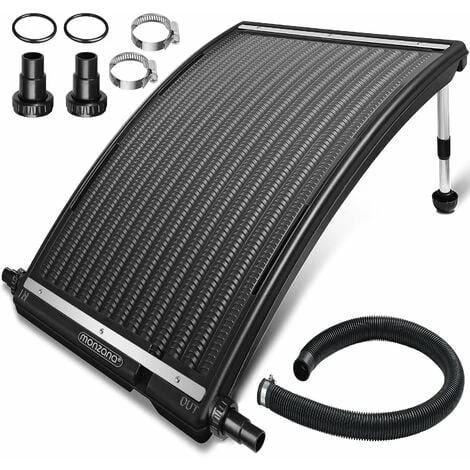 Selon les conditions météorologiques et l’orientation du panneau solaire, un réchauffement jusqu’à 3° est possible. En connectant plusieurs collecteurs solaires, l’eau peut être chauffée davantage. La conception incurvée offre une plus grande surface d’exposition au soleil. Le chauffage solaire pratique est muni de pieds en aluminium, réglables entre 26 cm et 38 cm, de sorte que le panneau solaire puisse être installé de manière optimale vers le soleil. Les pieds peuvent être retirés pour le stockage hivernal.