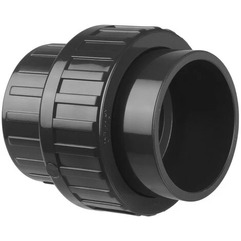 Raccord union 3 pièces PVC Ø 50 mm – AquaZendo. Convient à une pression maximale de 16 bars. Attestation de Conformité Sanitaire (ACS). Femelles à coller.