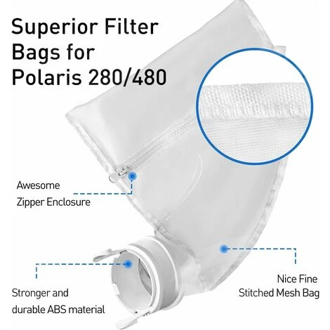 Compatibilité optimale : Nos sacs de nettoyage fonctionnent parfaitement avec les sacoches tout usage Polaris 280 et 480 (pièces K13 et K16). Veuillez noter qu’ils ne sont pas compatibles avec les modèles de nettoyeur de piscine Polaris 360 et 380.