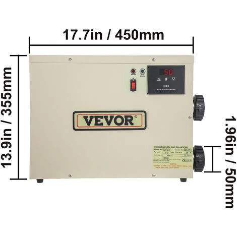 【CHAUFFE-EAU SUPÉRIEUR】 – Puissance: 15 kW, tension d’entrée: AC 380 V 50/60 Hz; Courant: 23 A; Taille du produit (LxlxH): 450x105x355 cm. Ce chauffe-eau de piscine adopte des plaques de zinc plaquées d’aluminium avancées, évitant efficacement les blessures causées par l’exposition au soleil. Le réservoir de revêtement utilise de l’acier inoxydable 304 pour offrir des performances durables et robustes.