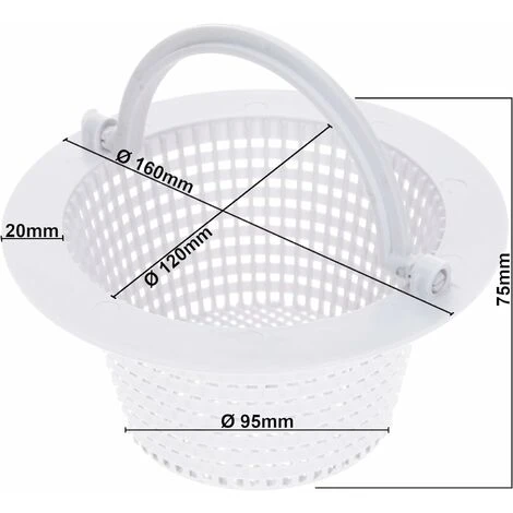 Skimmer Panier 16 cm I Panier de rechange pour skimmer standard I Préfiltre de piscine I Filtre de piscine 16 cm I Avec poignée pour un retrait facile I Résistant au chlore I Stable pour skimmer avec un panier de 16 cm de diamètre. Débit d’eau optimal grâce au trou de tamis de 2 à 3 mm. L’eau glisse de manière optimale à travers le bac de récupération et la saleté reste dans le skimmer. Les aiguilles de pin, les petites branches et les feuilles glissent à travers le rabat de skimmer pour rester accrochées dans le filtre de skimmer. Empêche les impuretés et les grosses saletés de pénétrer dans la boîte de filtre à sable. La poignée intégrée vous permet de retirer le panier facilement lors du nettoyage. Le panier de 7,5 cm de profondeur est également adapté pour insérer une petite quantité de balles filtrantes dans le filet dans le panier. Cela assure une meilleure pré-filtration. Le bord extra large de 2 cm du filtre de rechange assure une insertion stable dans votre chambre complète, comme ils sont souvent utilisés pour les piscines à cadre, les piscines hors-sol et les bassins à parois en acier.